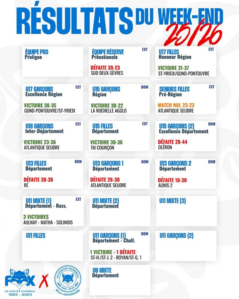Calendrier/Résultats – Classement